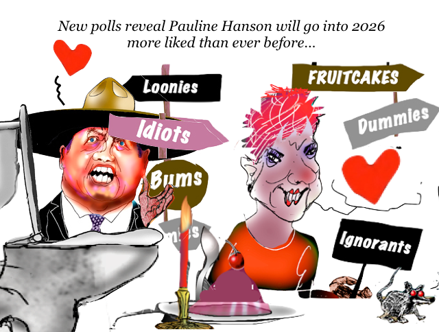 dear reader .....Just a note to alert you that you can read the comments - without being registered. We won't even know who you are... although you will be counted. But a heartfelt thanks, even if you are just looking at the cartoons ... To be able to comment you will have to register but no one would have to know who you are, except the administrator of the site. Please note that this site is archived in the National Library of Australia in perpetuity. Just click on "recent comments" or on "read more" in the line below the cartoons to access some of the most fascinating and pertinent information there is from Australia and around the globe.