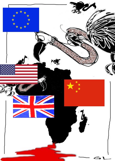 Africa suffers… In many places of Africa, the people suffer… The pains come from various sources: — the lingering momentum of COLONIALISM… — the Vulture funds that are bleeding countries by refinancing the IMF and World Bank bad debts… — Western induced POVERTY through deliberate bad debts... — the Muslim terrorists being mostly funded by the USA and the Wahhabis/Sunnis of Saudi Arabia… — Slavery (historical and present)…. — plunder of resources by Multinationals… — inherited and Western cultivated corruption in order to prevent increase in the standards of living and to maintain divisions…. — Murders of many African thinkers and independent inspiring leaders…. — Tribalism, broken by artificial boundaries…. — Racism… — Global warming which is increasing desertification…. — Diseases (imported and intrinsic)....