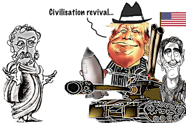 What if Trump’s apparently chaotic thought processes and intuitive decision making are all a blind, a charade? What if we are really witnessing, in the Middle East and more widely, a carefully constructed plan with very definite objectives? Has Trump in fact “planned each charted course, each careful step along the byway”, while flinging the chaff of apparent chaos? I realise that this is not intuitive, but bear with me…