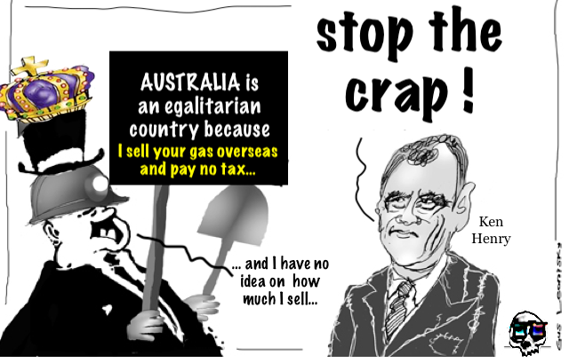 We are on the biggest heist and media/political snowjob in Australia today. Shell’s Australian boss fronted a parliamentary inquiry into gas this week and somehow could not say what revenue her company made or how much Australian gas it exported. Meanwhile, Ken Henry, one of the country’s most respected tax experts, told the same inquiry to “just do it” and “stop the crap” on taxing Australia’s finite natural resources.