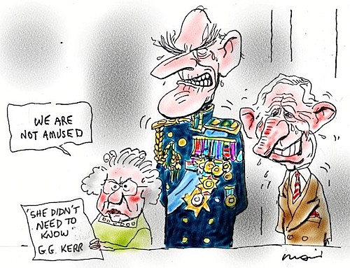 (In his own papers) Kerr recounts Charles’ solicitous response to the governor-general’s concern for his own possible recall by Whitlam, should Whitlam hear that Kerr was even contemplating dismissal: “but surely Sir John, the Queen should not have to accept advice that you should be recalled at the very time should this happen when you were considering having to dismiss the government”.