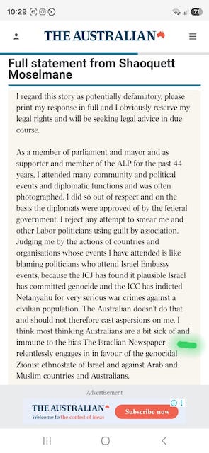 Is it the dawn of a new age of truth in mainstream media? Rupert Murdoch’s The Australian has identified itself as The Israelian. What’s the scam? “I think most thinking Australians are a bit sick of and immune to the bias The Israelian newspaper engages in favour of the genocidal ethnostate of Israel,” said a letter from politician Shaoquett Moselmane (screenshot below).